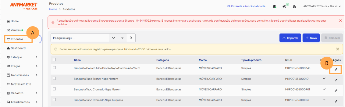 Você deve ir no cadastro do produto dentro do ANYMARKET, clicar em editar seu produto: