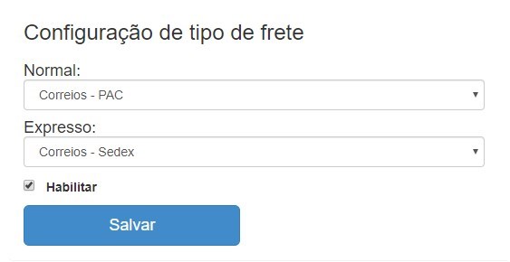 Após clicar em editar você deverá definir qual o serviço de frete enviará para o ANYMARKET para a modalidade Normal e Expressa e em sequencia clicar em Habilitar e salvar as alterações: