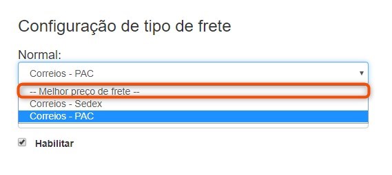 Dica: Você pode optar por trabalhar com o tipo de frete por transportadora ou serviço, ou pode escolher a melhor opção disponível, dessa forma, a Frenet verificará qual é o melhor preço (em caso de envio “normal”) ou melhor tempo de entrega (em caso de envio “expresso”):