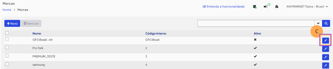 Atenção: Caso sua marca não apareça para vinculo, entre em contato com a Loja do Mecânico, solicitando que seja cadastrado a marca na plataforma. Após o cadastro realizado pelo marketplace, a marca estará disponível para ser vinculada no ANYMARKET após 24 horas.