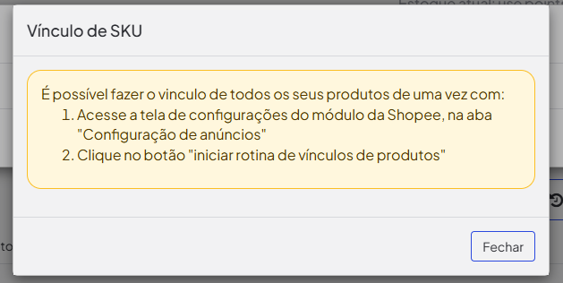 Após selecionar o marketplace, o vínculo será realizado automaticamente com base no SKU do produto.