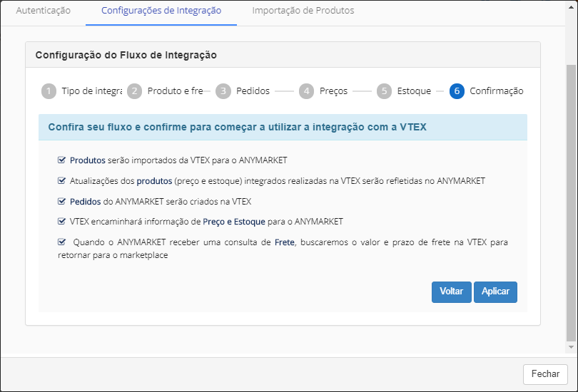 Após configurar e Aplicar essas informações, não será possível modificar o fluxo de integração de pedidos, então se atente ao que irá decidir. Caso tenha algum problema nesse momento ou acabe salvando a informação errada, contate seu analista e solicite apoio.