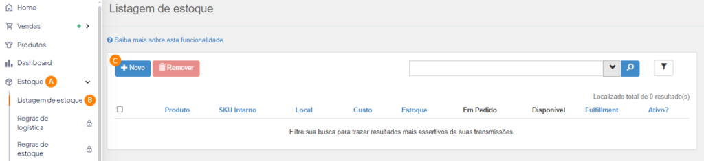Para isso acesso acesse a tela de Estoque no painel ANYMARKET e posteriormente Local de estoque: