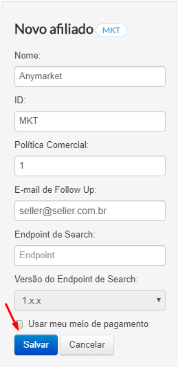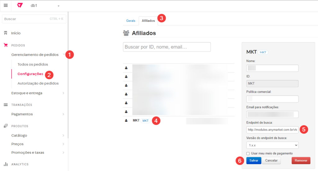 (7) Identificadores dos marketplaces, define o nome do AFILIADO/MARKETPLACE que será integrado os pedidos de cada marketplace que tem ATIVO no ANYMARKET.
