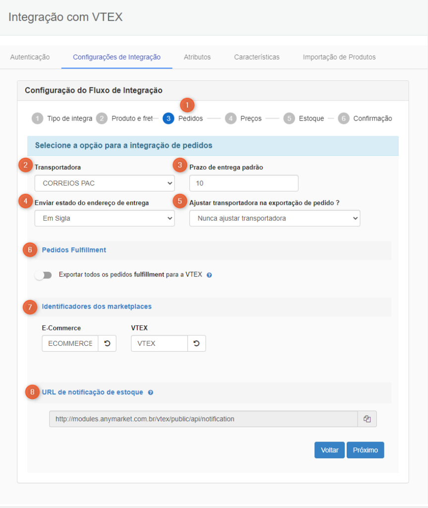 (4) Enviar estado do endereço de entrega, é utilizado para definir como deve ser integrado um pedido na VTEX quanto ao Estado dos envolvidos, sendo possível: Em sigla ou Por Extenso.
