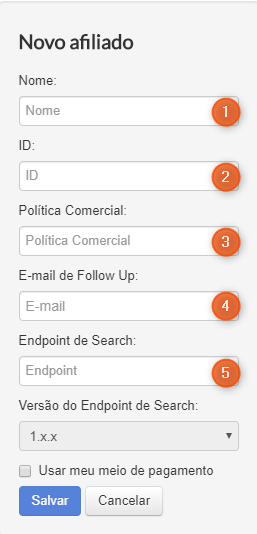 (4) E-mail do responsável pela integração (deve ser exclusivo para esse afiliado, caso já esteja em um outro afiliado configurado, será validado e não será possível salvar as informações)